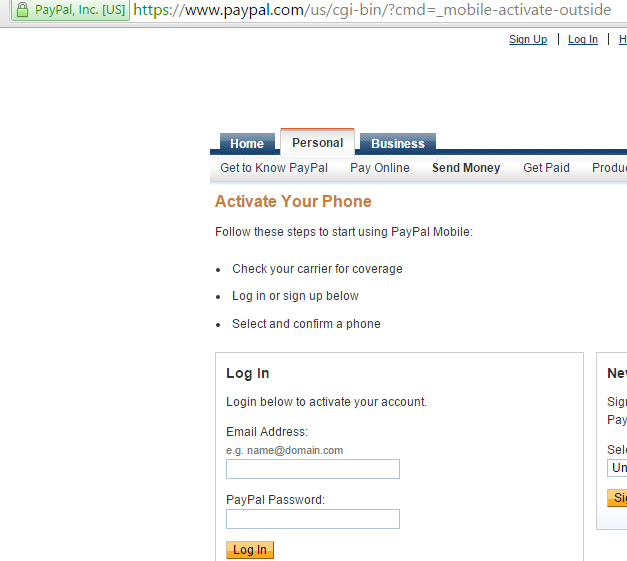 In this post, i would like to share a very simple logic flaw I found earlier this year I have found a way to circumvent mobile verification by utilizing a different portal for logging into a paypal account. The flaw lies in the fact that paypal does not perform two step verification/authorization checks on all different portals that are used to log into a paypal account. Ideally, there should be a centralized authentication mechanism to authenticate the user or else additional authorization checks have to be applied to all different portals that are used to log into paypal ccount. In this case, We could use the mobile activation page to log into the paypal account without happen to use a mobile phone.