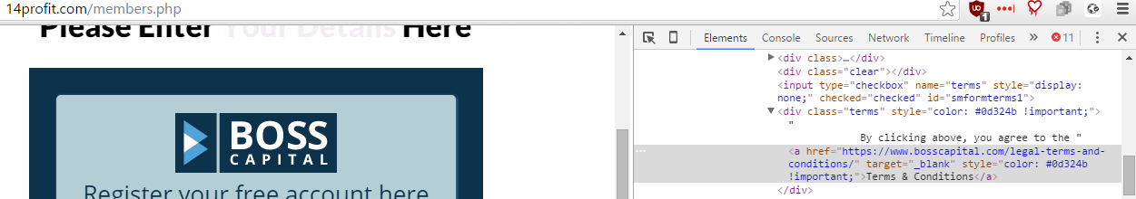 hovering over the "Terms & Conditions" hyperlink leads to this investment/stocks company
